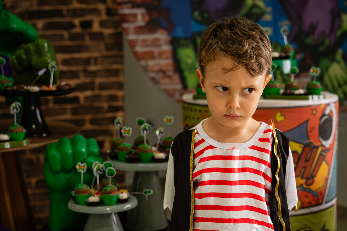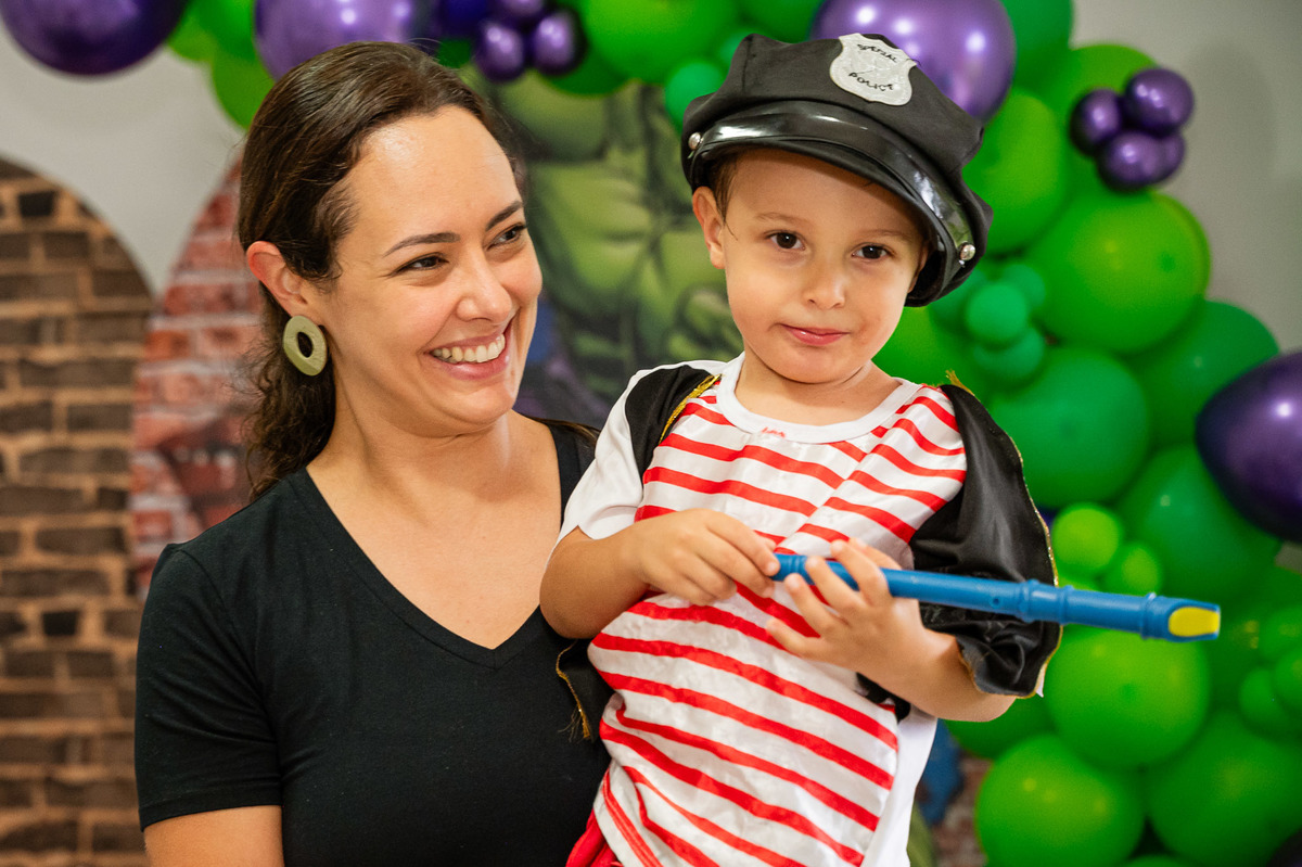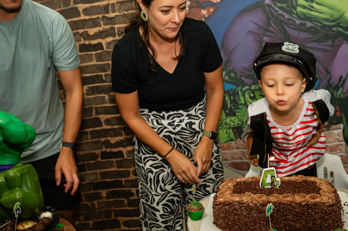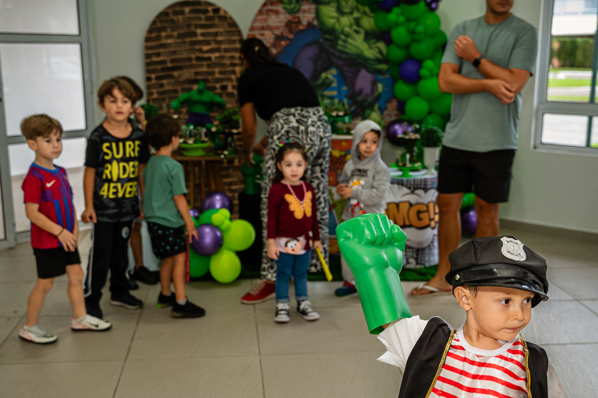 Com o tema do Hulk, a festa ganhou ainda mais personalidade. Cada detalhe trouxe o universo desse herói tão forte e cheio de atitude, combinando perfeitamente com a fase cheia de descobertas, imaginação e intensidade que é a infância.