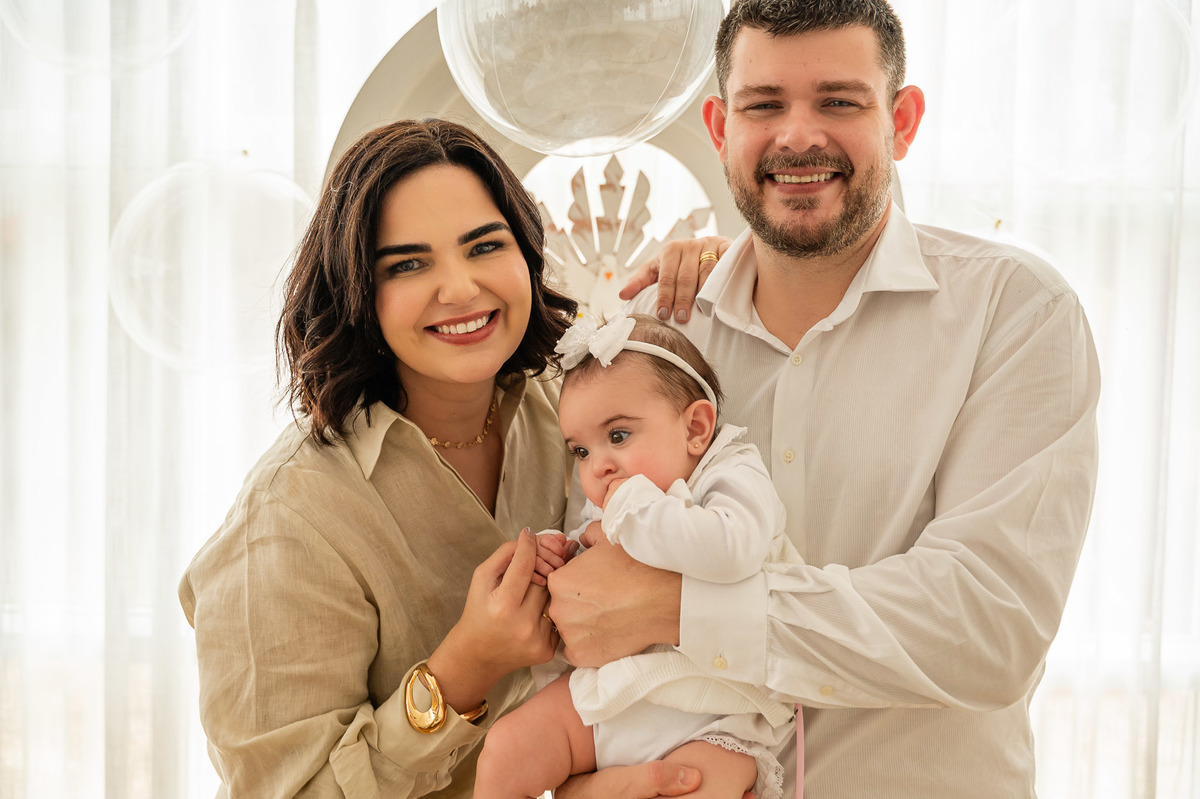 A cerimônia foi delicada, cheia de fé e ternura. Ver os pais e padrinhos com o olhar iluminado, sentindo o peso doce dessa nova missão, foi emocionante. Cada gesto transmitia amor, esperança e a certeza de que aquele era um momento abençoado.