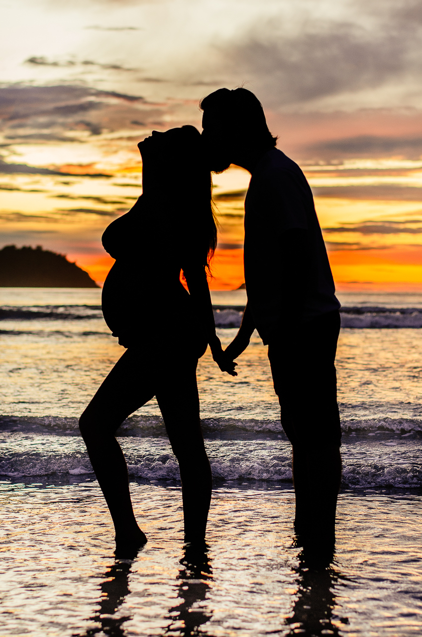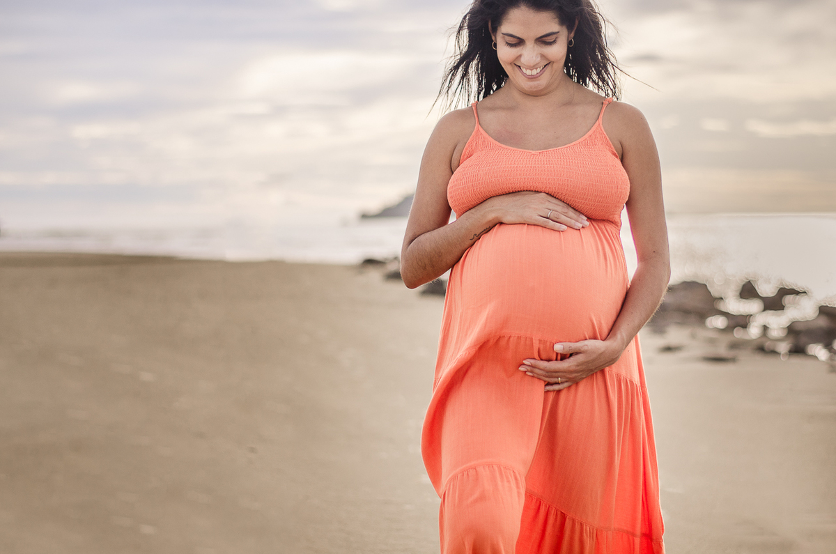Amanhecer de Amor: Ensaio de Gestante na Praia ao Nascer do Sol