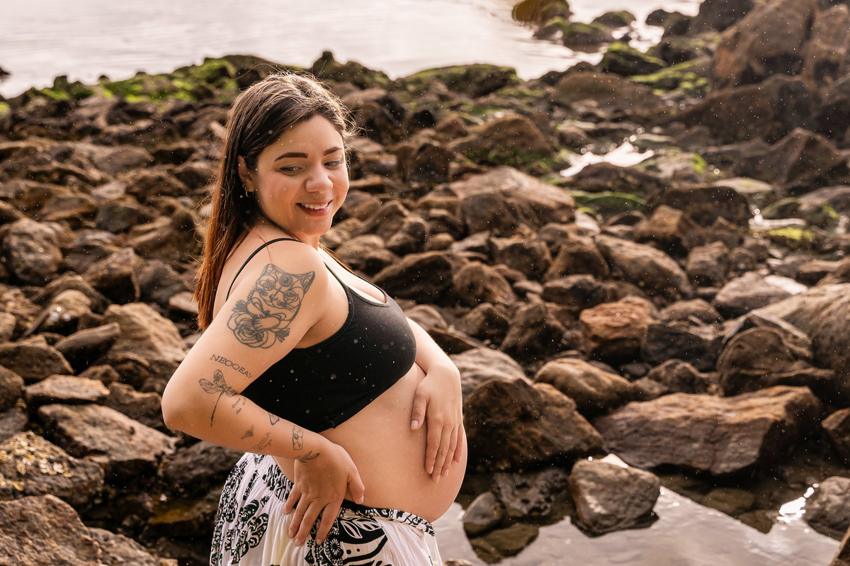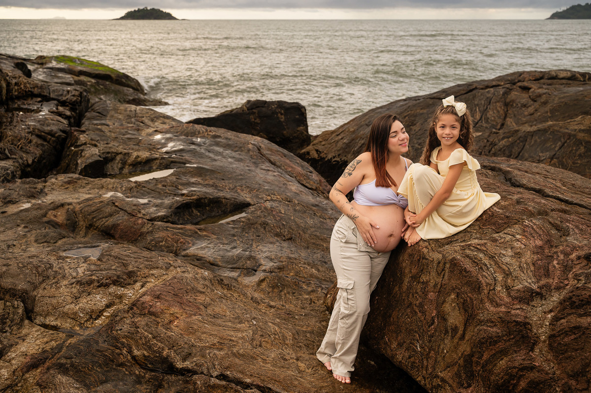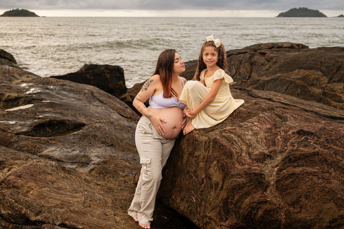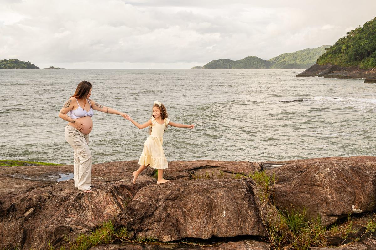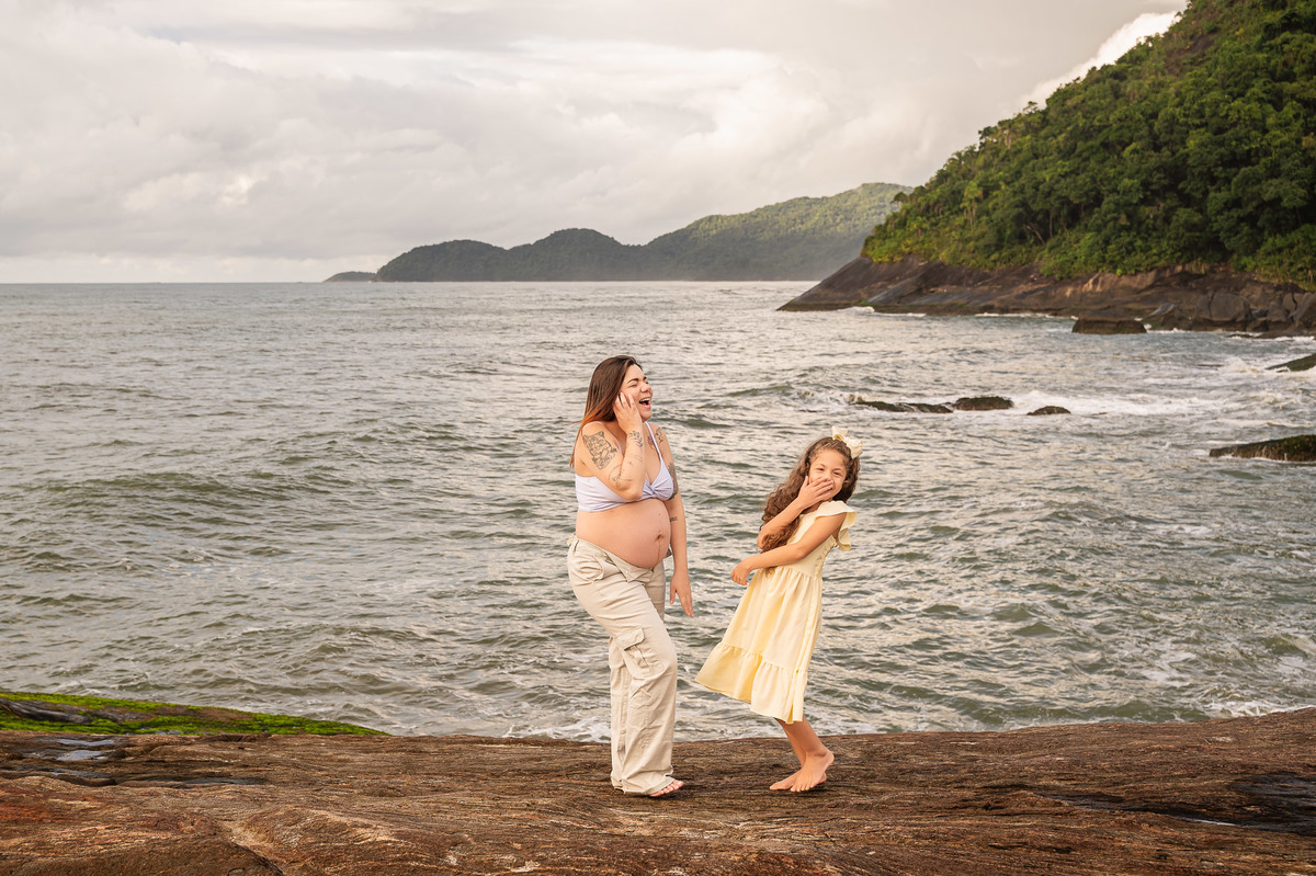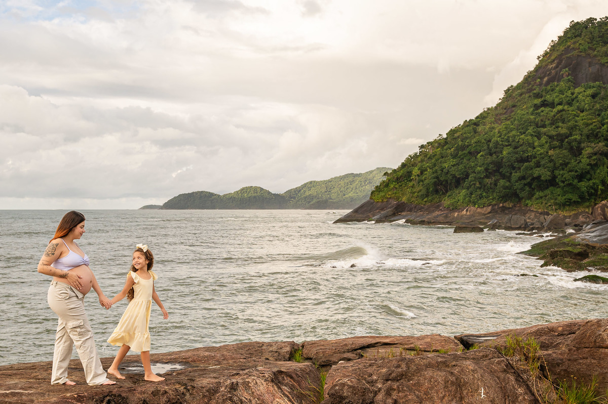 Ensaio de gestante externo - Prainha, Peruíbe-SP - Thayna e Valentina